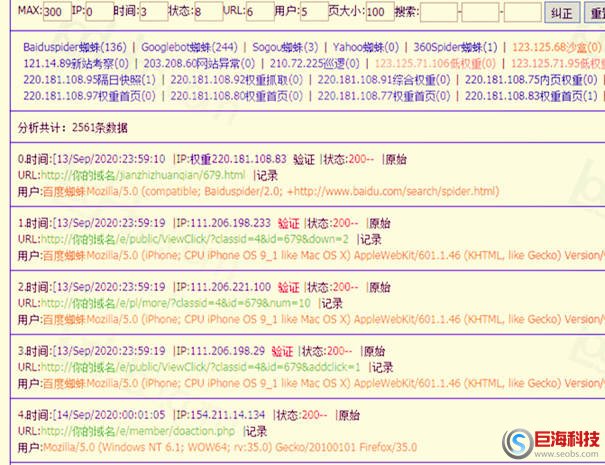 一般來說,我們使用在線工具logoho來獲取Spider狀態碼。如何看到Spider爬行那些鏈接目錄呢?鏈接和目錄,我們可以通過爬行Spider目錄對其進行分析。