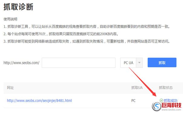 利用百度搜索資源平臺的爬行診斷工具,站長可以從百度蜘蛛的角度查看爬行內容,并自我診斷百度蜘蛛看到的內容是否符合預期。怎樣刪除百度快照?使用這個工具的目的是為了保證百度蜘蛛能夠有效的抓取網頁,因為在很多情況下,比如網頁代碼復雜或者服務器不穩定,蜘蛛是無法抓取網頁內容的。如果爬取失敗,繼續點擊爬取,直到顯示爬取成功,最好再點擊幾次。