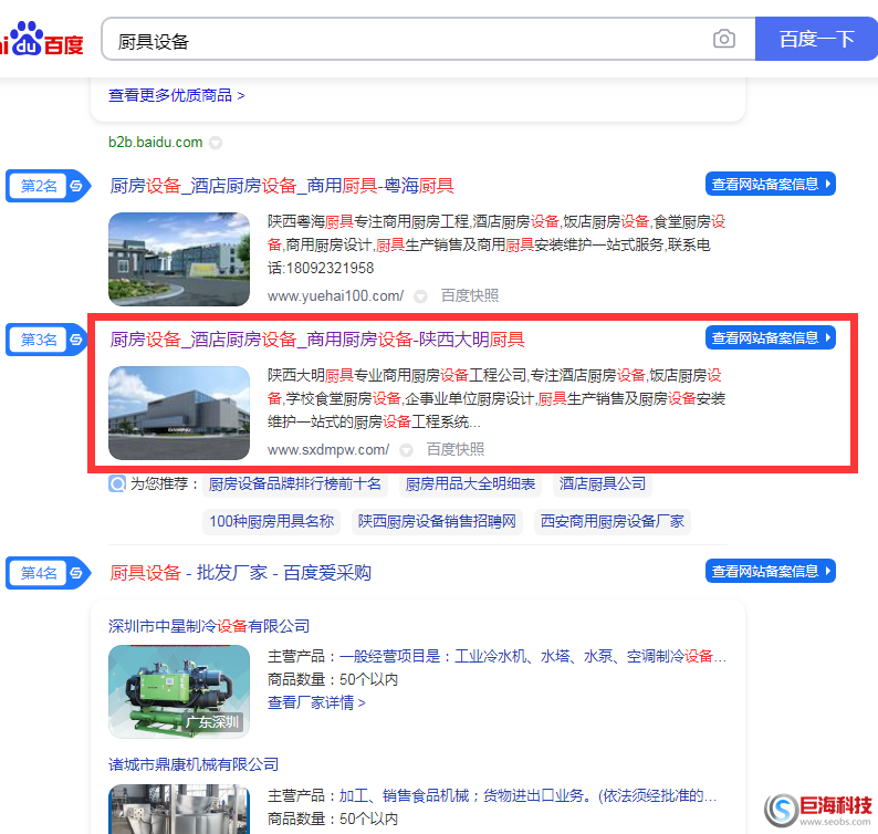 以上就是西安網站優化巨海科技提供的近期案例,更多關于“關鍵詞 ”關鍵詞 ”廚具設備”40天到百度首頁”的相關效果,請聯系我們的在線客服,希望對你有所幫助。