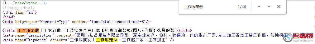 通過對三個(gè)關(guān)鍵詞的分析,其實(shí)工衣定做,應(yīng)該放在第一位,工作服定做放在第二位,工裝批發(fā)生產(chǎn)廠家放第三位,而該站長把工作服定做放在第一位,說明把網(wǎng)站優(yōu)化的重心放在了該詞上。